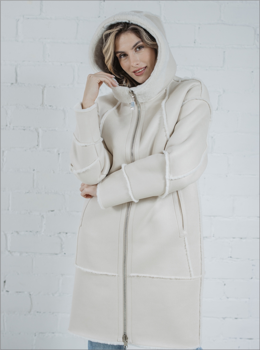 Эко дубленка «Миллениум» капюшон бежевый цвета бежевый