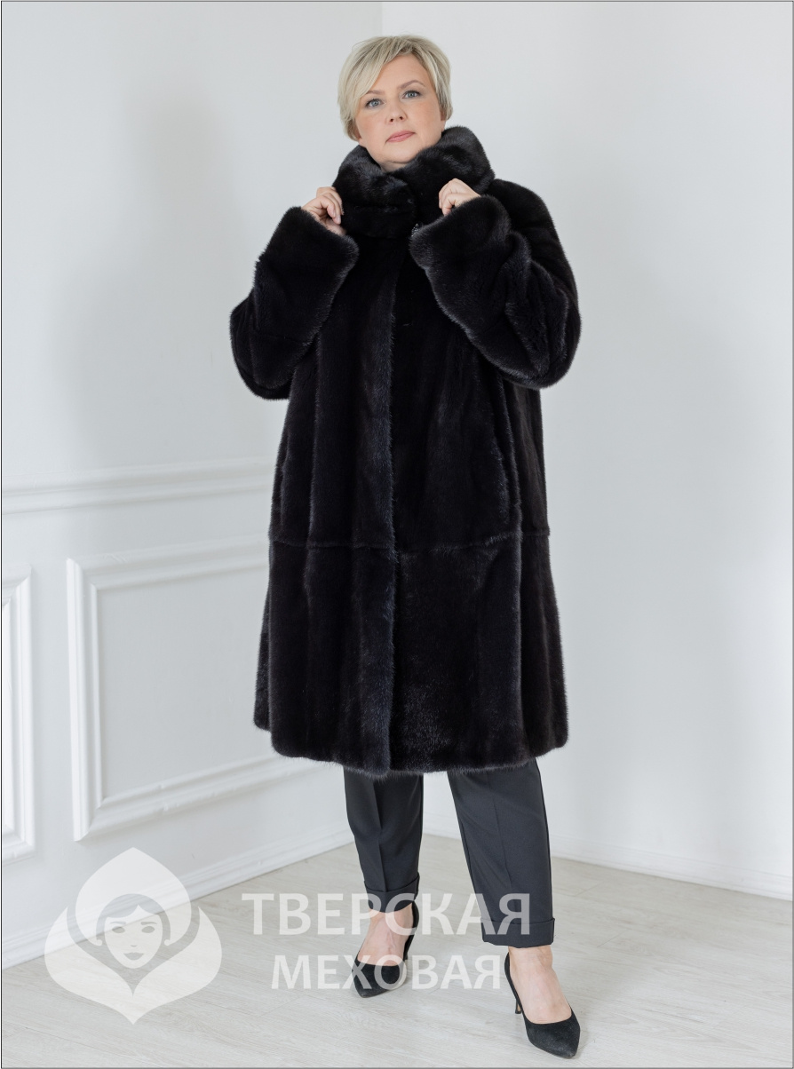Благородное пальто из отборного меха российской норки премиального качества. Шуба А-образного силуэта из цельных пластин, с минимальным количеством швов в изделии. Дизайнерские элементы - рукава с поперечными вставками, расположенными по косой линии, объемный воротник, надежно защищающий от ветра. Норковая шуба «Графиня» с воротником выполнена в любимом покупательницами цвете «графит». Внутренняя фурнитура шубы импортная, очень прочная. В таком изделии вы будете чувствовать себя особенной, восхищая окружающих.Характеристики